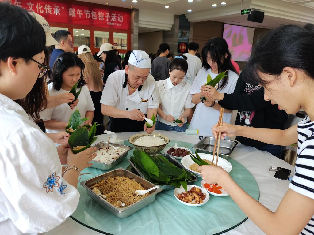2023年6月16日,由后勤处饮食科牵头,在南岸校区自营食堂和委托管理食堂组织开展了“浓情端午,文化传承”包粽子活动,旨在将餐饮文化和劳动教育融合,让学生在包粽子的劳动实践中品味端午节的深厚文化底蕴和内涵,培养学生的爱国主义情怀,传承中华民族优秀的传统文化,增强学生对民族文化的认同感和自豪感。200余名各年级学生参加了本次活动。