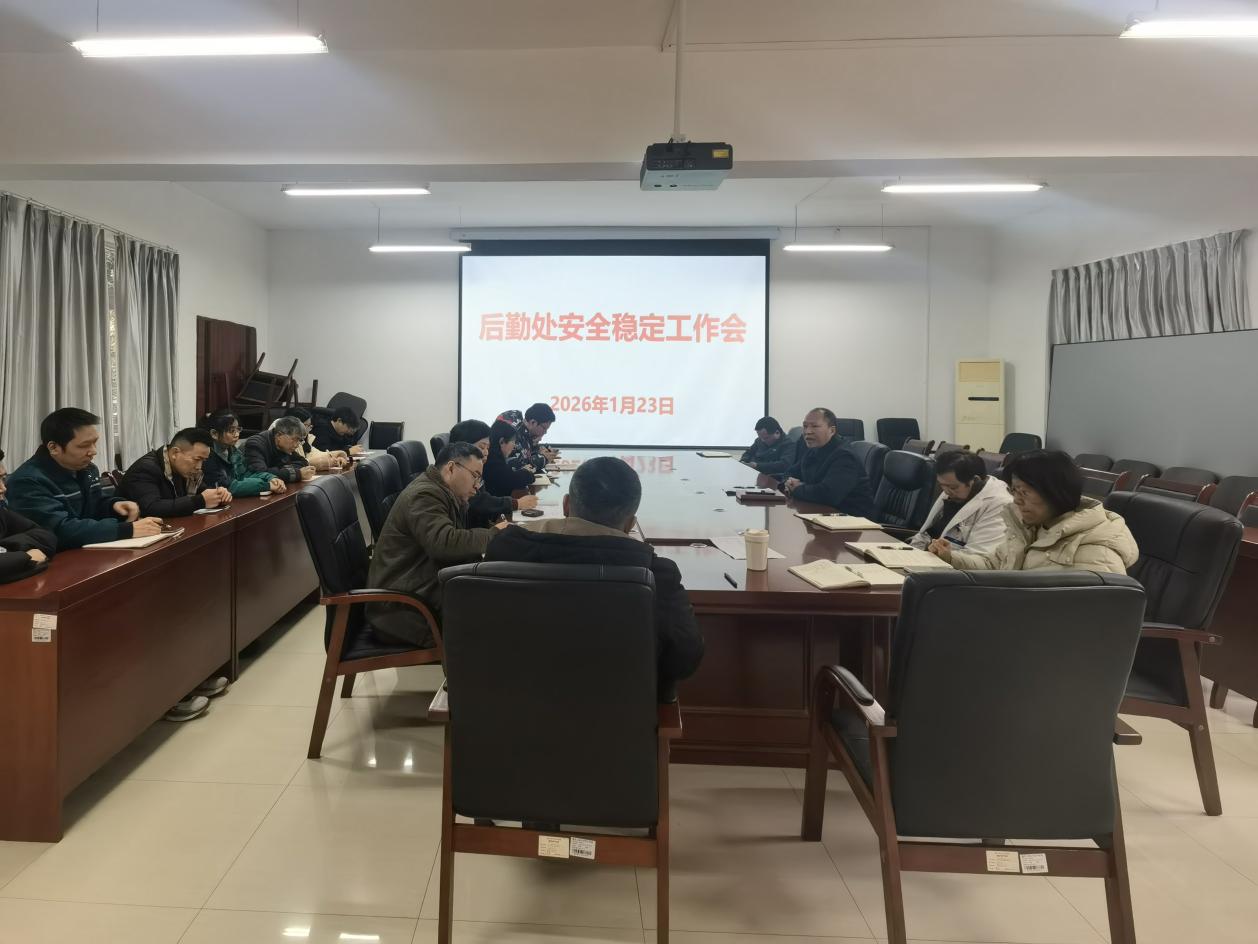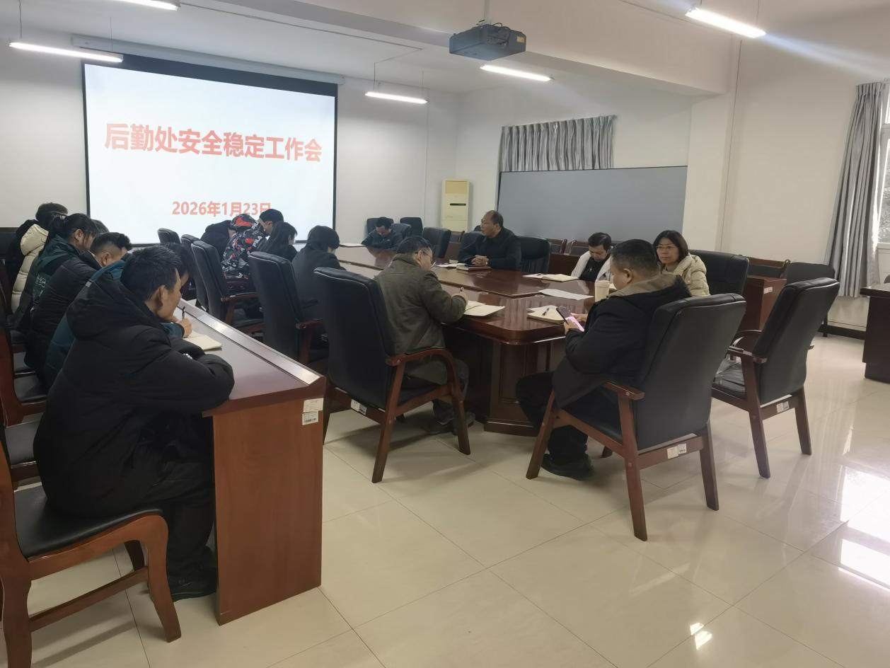 2026年1月23日下午15:30,后勤处召开安全稳定工作专题会议。后勤处处领导、各科室负责人及各外包服务公司负责人参加会议。会议由后勤处副处长(主持工作)杜元林主持。