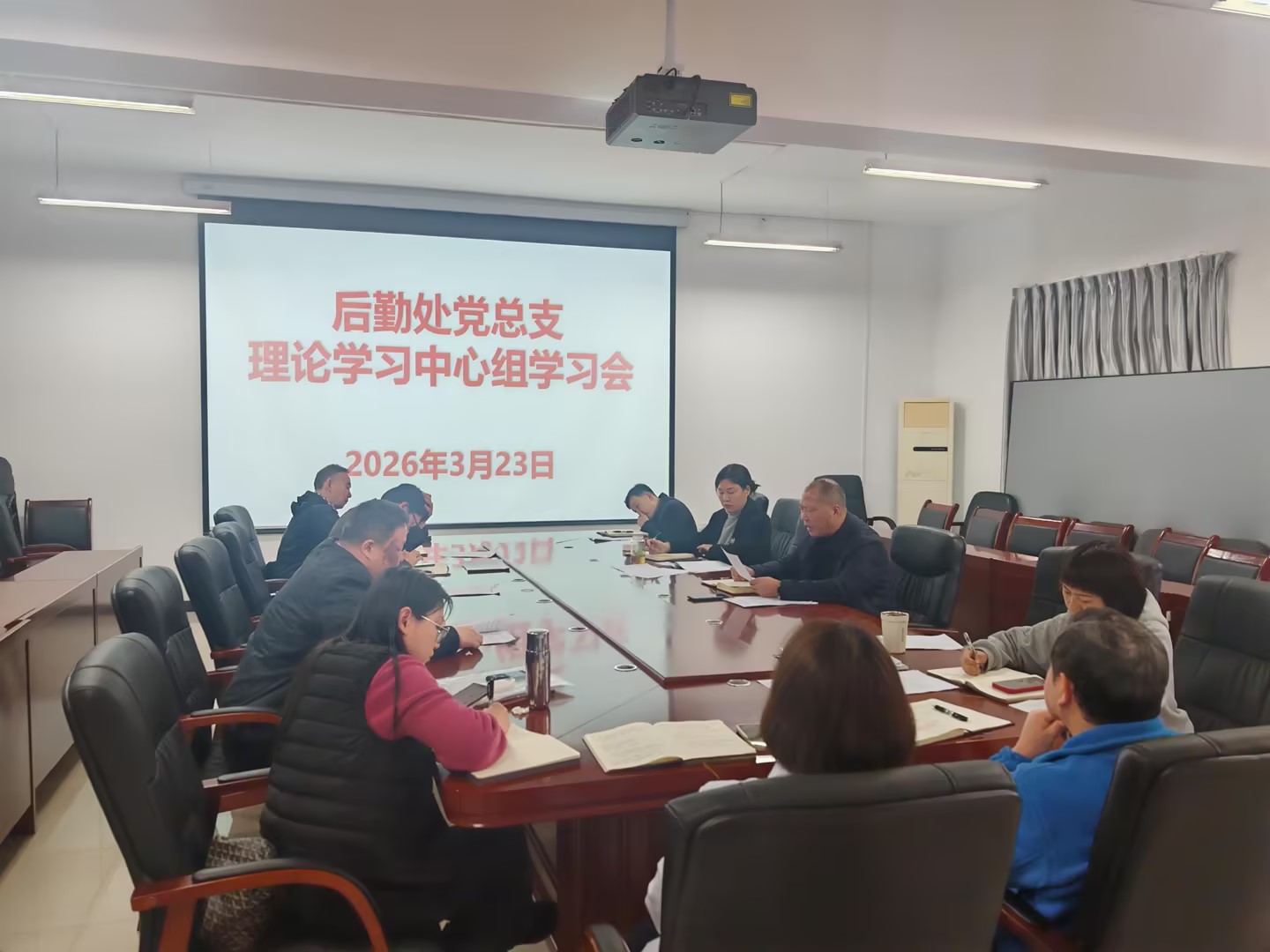3 月 23 日上午,后勤处党总支在后勤处317会议室召开理论学习中心组学习会,深入学习贯彻习近平总书记关于党的自我革命的重要思想,坚定不移深化全面从严治党。后勤处党总支全体委员参加,各科室负责人、各党支部书记列席。