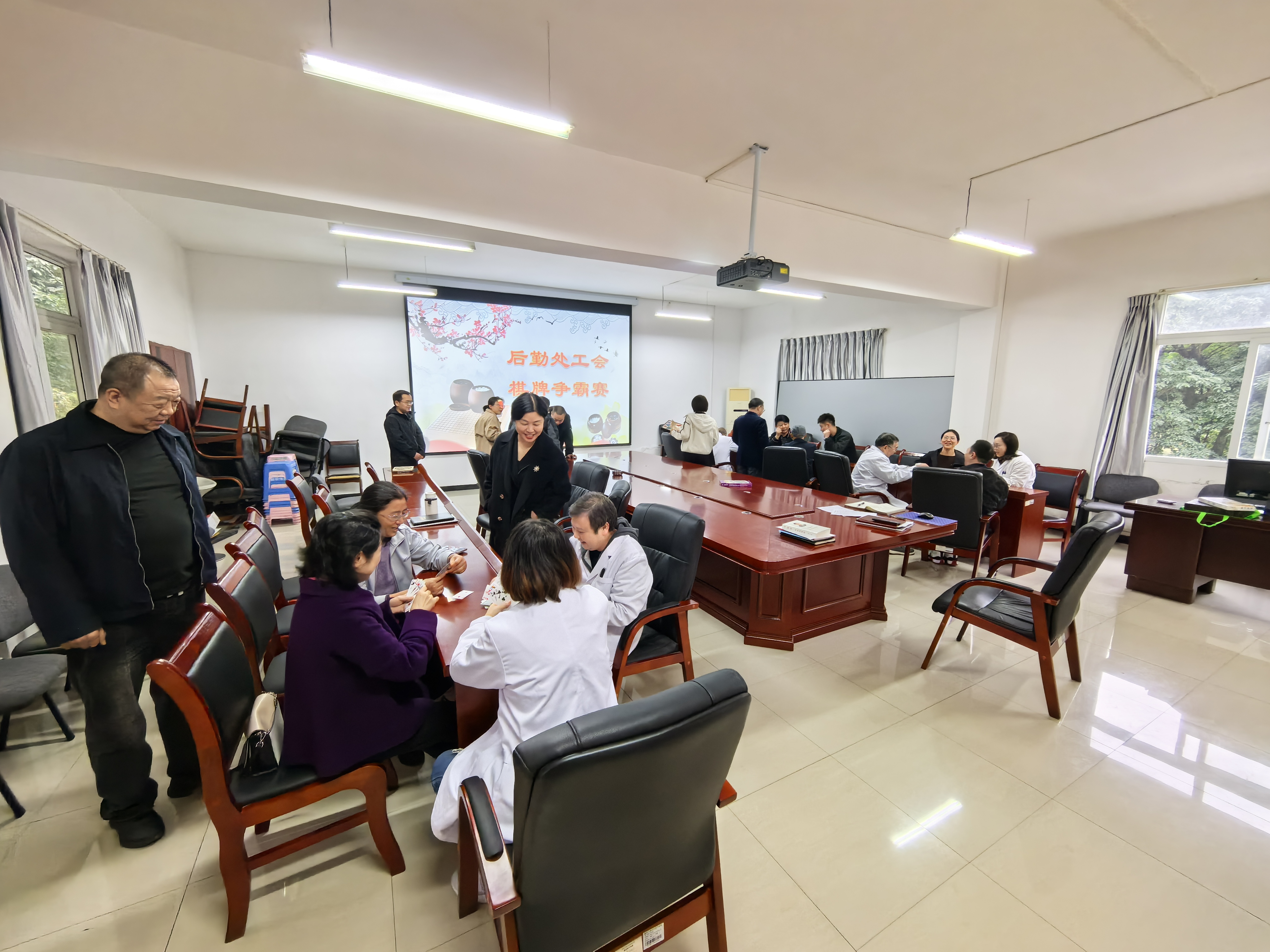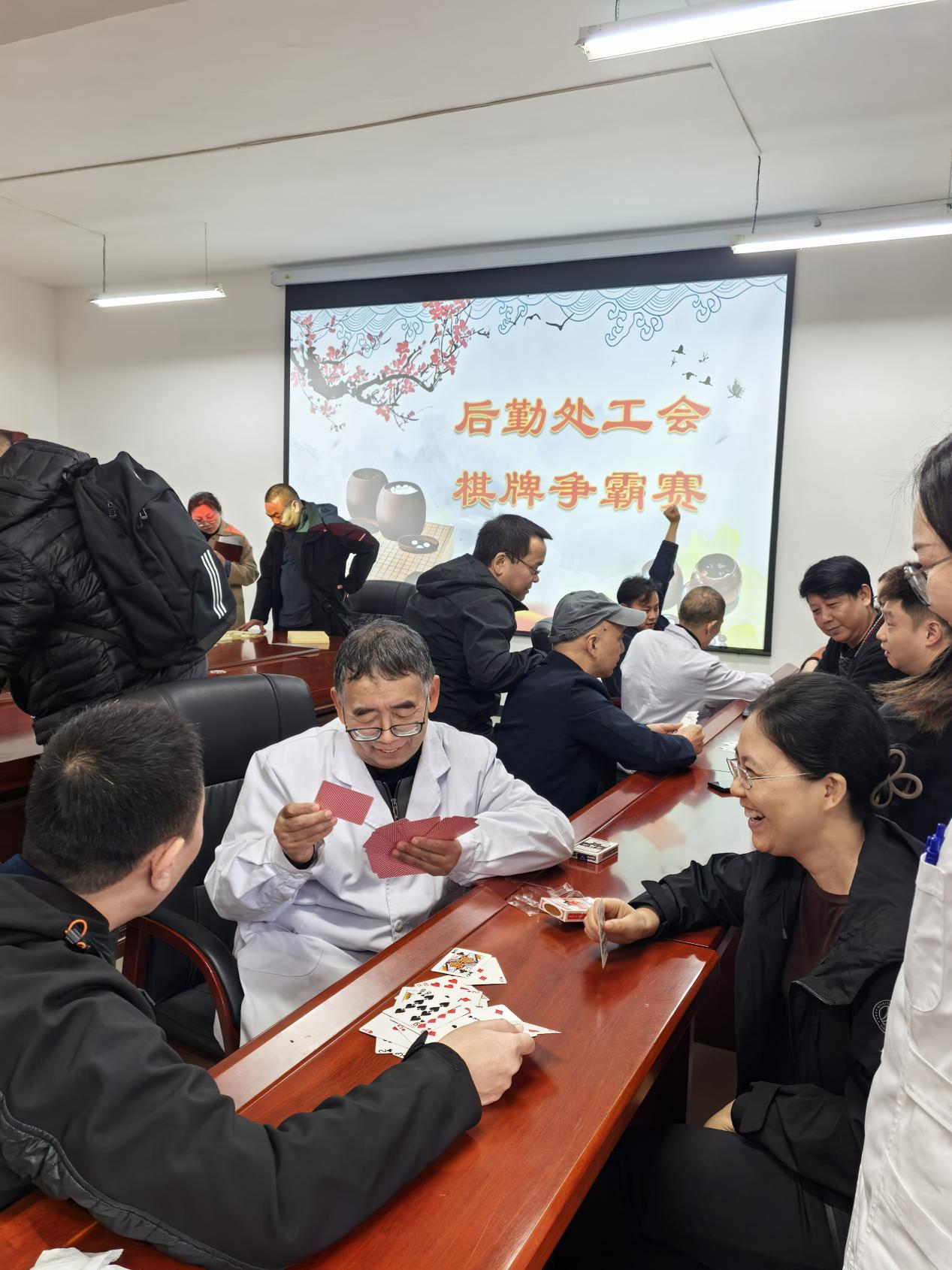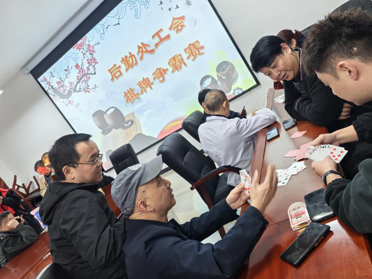 为缓解职工工作压力、增进内部交流协作、丰富业余文化生活,11月14日上午,后勤处工会在317会议室成功举办“以棋会友,乐在其中;凝心聚力,共促发展”主题棋牌比赛。后勤处工会全体会员踊跃参与,在楚河汉界的对弈与牌桌的博弈中展现智慧风采,营造了积极向上的团队氛围。